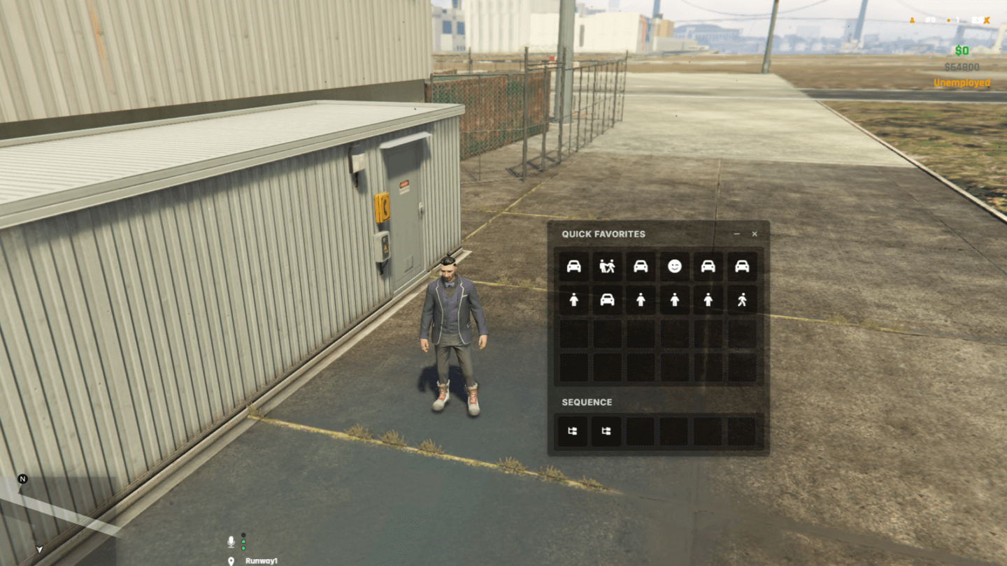 A modern and intuitive animation browser displaying all emotes with clear icons, search, categories, and instant preview. Players can trigger, favorite, and organize emotes seamlessly through a clean UI.